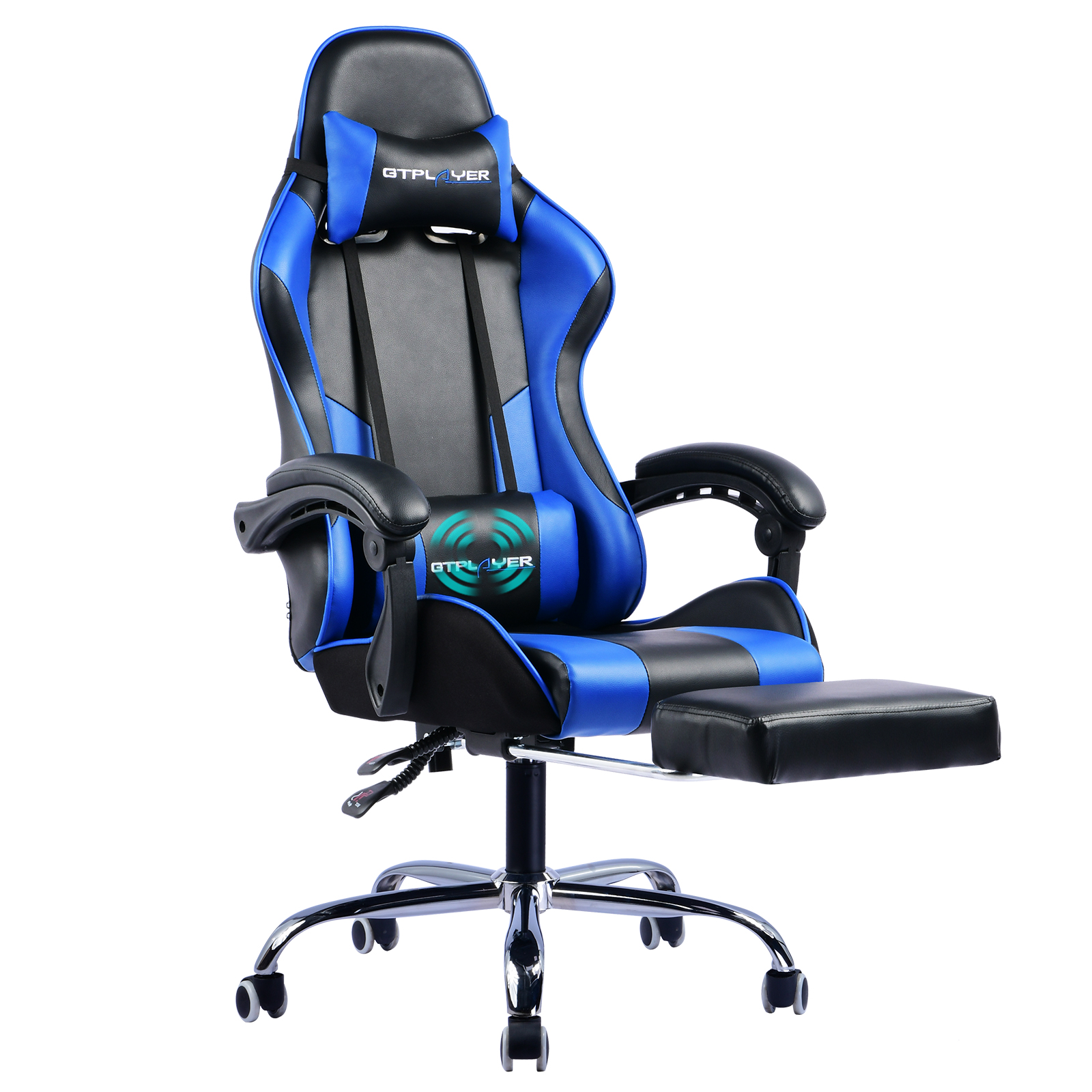 Gtplayer Gaming Chair Leather Office Chair With Footrest And Ergonomic Lumbar Massage Pillow Blue Walmart Com